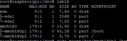 Jednou za čas přestane Micro SD karta v RB fungovat a pomůže jen obnovit zálohu. Ale co dělat, když máme na kartě pozměněné soubory, které potřebujeme z hroucené karty dostat? Pak pomůže obnovit zálohu RB na jinou Micro SD kartu, případně provést novou instalaci a do čtečky Micro SD vložit původní kartu. Vsunout do RB a příkazem lsblk zjistit stav karet.